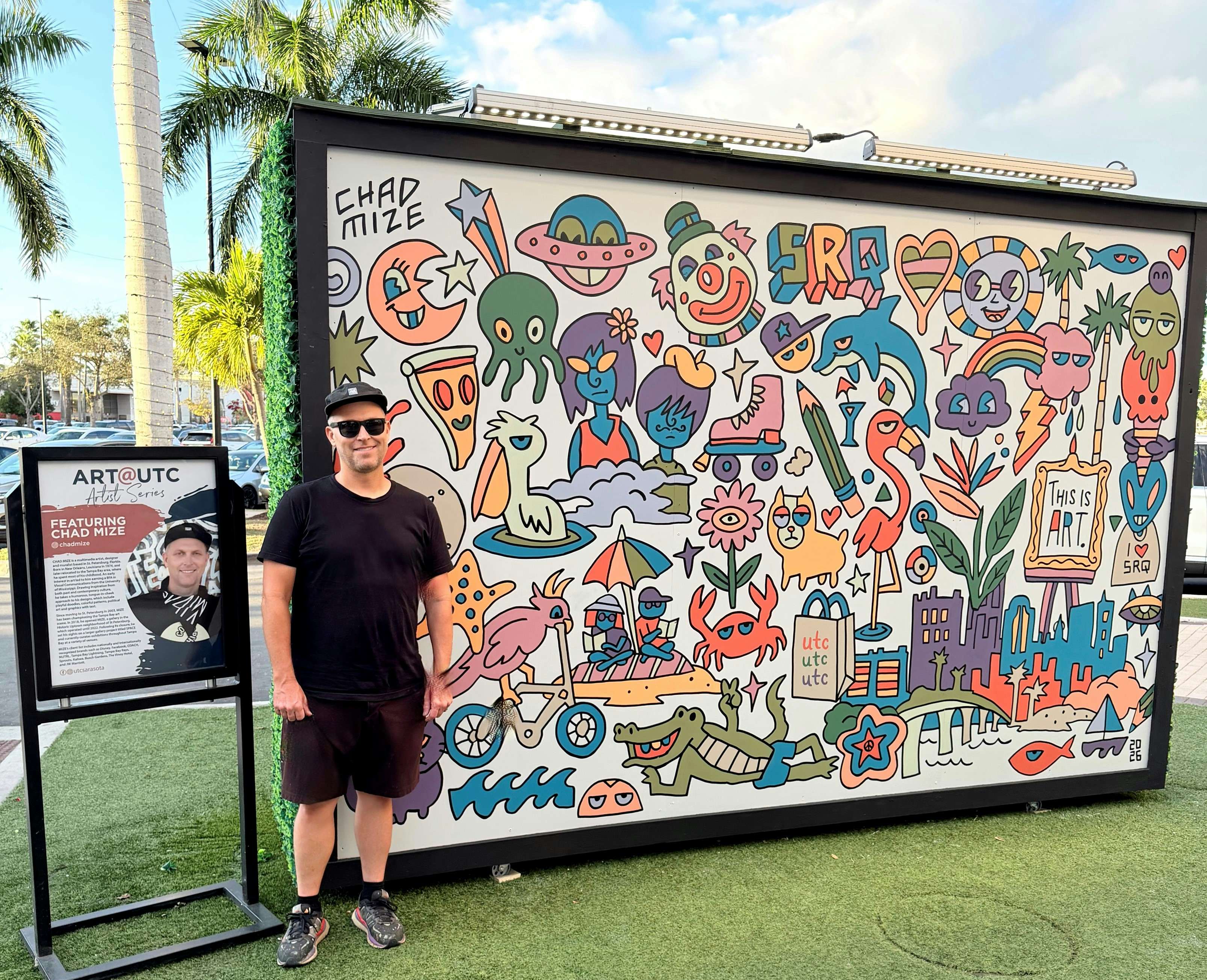 CHAD MIZE is a multimedia artist, designer and muralist based in St. Petersburg, Florida. Born in New Orleans, Louisiana in 1974, and later relocated to the Tampa Bay area, where he spent most of his childhood. An early interest in art led to him earning a BFA in Visual Communications from the University of Mississippi. Drawing inspiration from both past and contemporary culture, he takes a humorous, tongue-in-cheek approach to his designs, which include playful doodles, colorful patterns, political art and graphics with text.