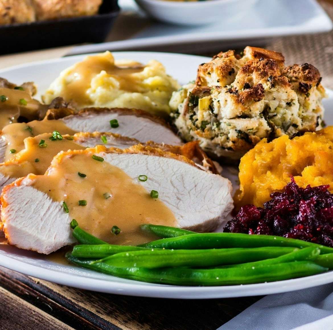 Dine-in: This popular restaurant at the Mall at UTC offers a Thanksgiving feast featuring roasted turkey, gravy, mashed potatoes, brioche stuffing, French green beans, mashed butternut squash, cranberry relish and a mini pumpkin pie. $34.95, $16 (children)
