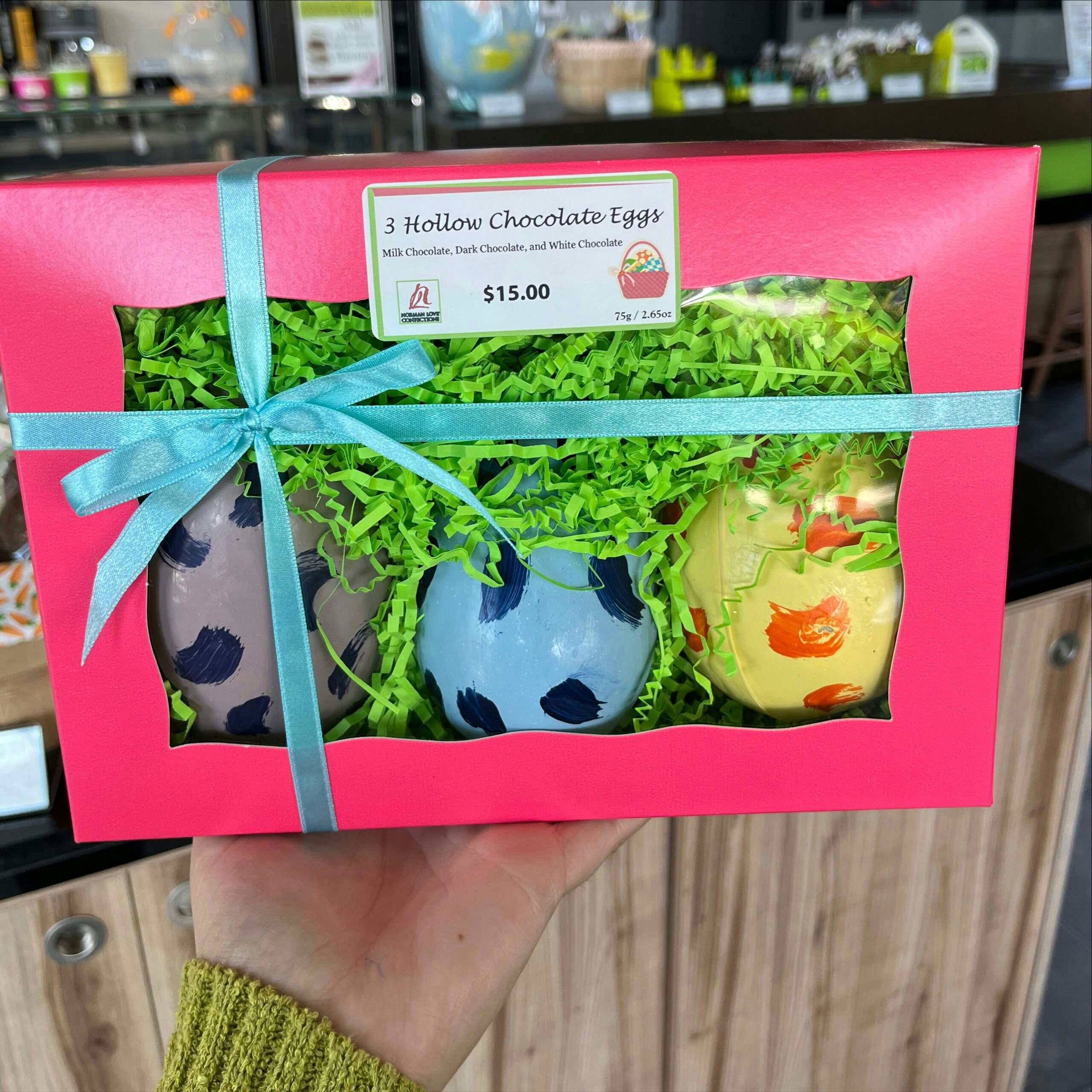 Elevate your baskets with creamy Easter eggs and chocolate bunnies from Norman Love. If you’re looking to indulge in a delicious dessert on Easter Sunday, the chocolate salon also offers specialty cakes, like spiced carrot, lemon strawberry and cream cheese mousse bunnies. Visit or call the shop to pre-order your desserts.