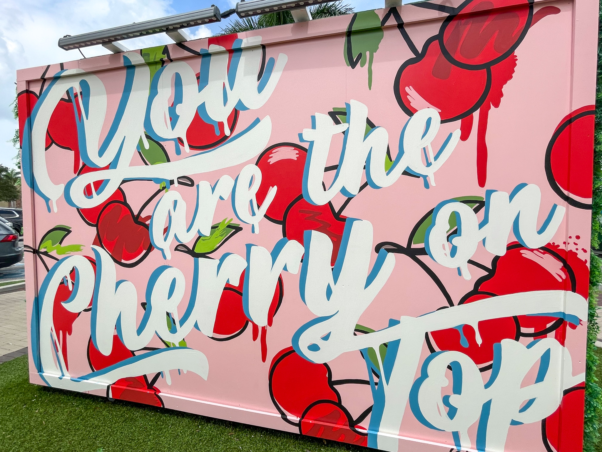 The seasons are changing and so is our rotating art space in the West District at UTC! As September arrived, so did our sweet new mural hand-painted by Tampa-based artist, Bianca Burrows. We asked her to create an uplifting piece for the community, and she served up the perfect design with a cherry on top. Bianca shared, “it’s my version of a positive affirmation. Just a gentle reminder that you are amazing.”
