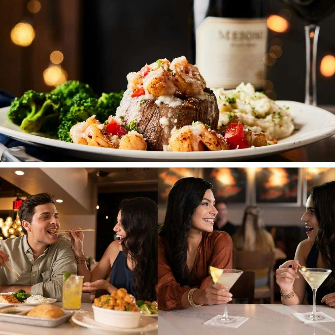 Bring your special someone to Bonefish Grill between February 3 and February 16 and get hooked on the limited-time scallop and shrimp filet mignon special. And you can never go wrong with martinis and sharing bang bang shrimp with your bestie. Indoor and outdoor seating available.